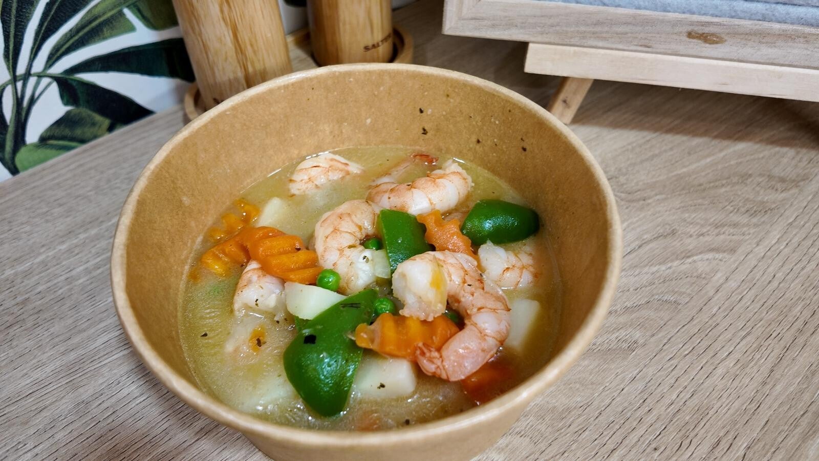 Filipino prawn curry is a flavorful and creamy dish made with succulent prawns, coconut milk, curry powder, and vegetables like bell peppers, potatoes, and carrots. It offers a mild, slightly sweet, and savoury taste, often enhanced with garlic, ginger, and a touch of spice. Served with steamed rice (not included), it highlights the Filipino love for coconut-based dishes and fresh seafood.